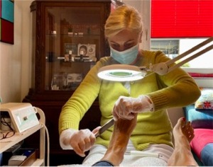 Desinfektion der Füße Kürzen der Nägel Nägel